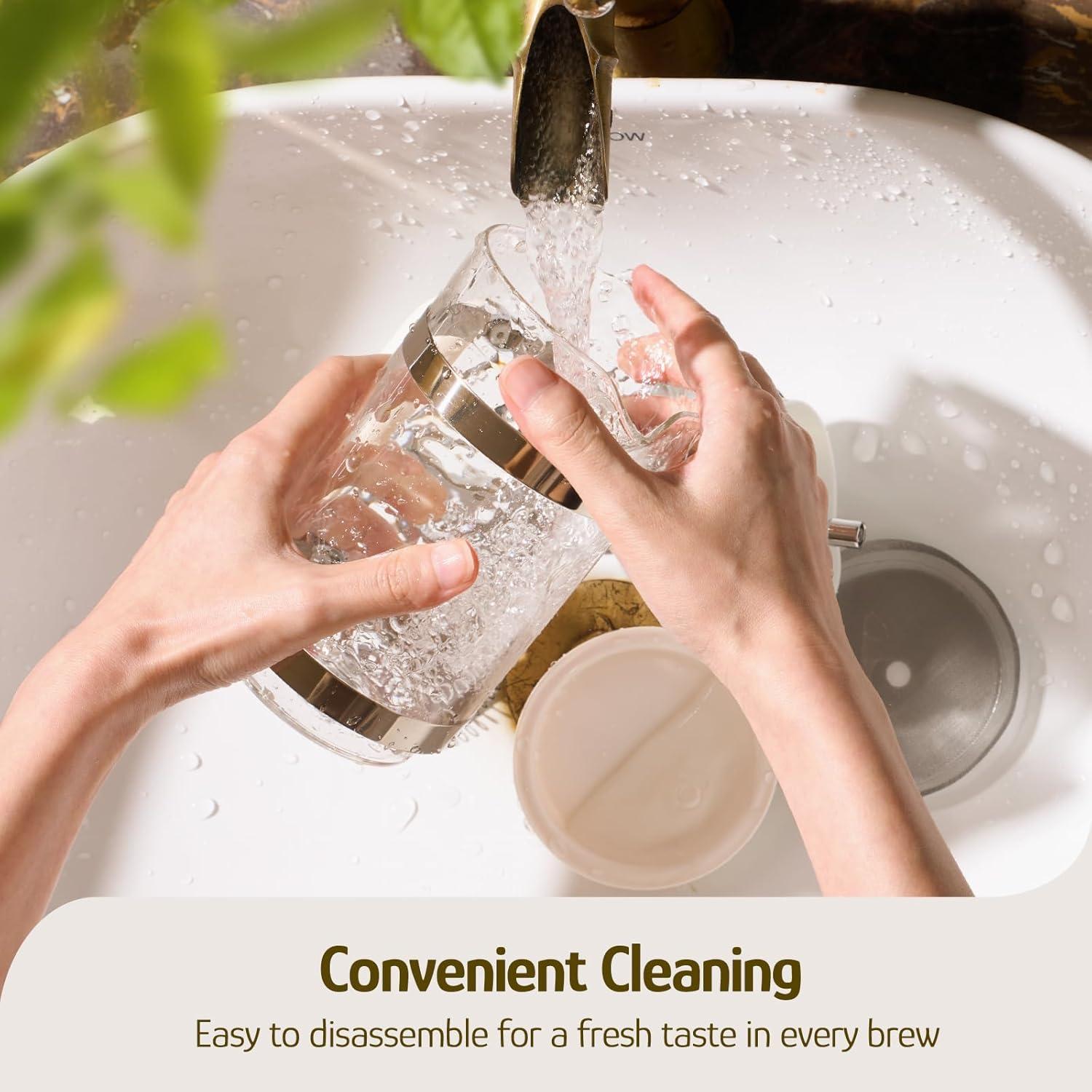 Flavor, Unleashed: This glass french press with its precision stainless steel filter, experience the full aroma and smoothness of your coffee—free from sediment. Every sip is pure, allowing you to indulge in the essence of each brew.